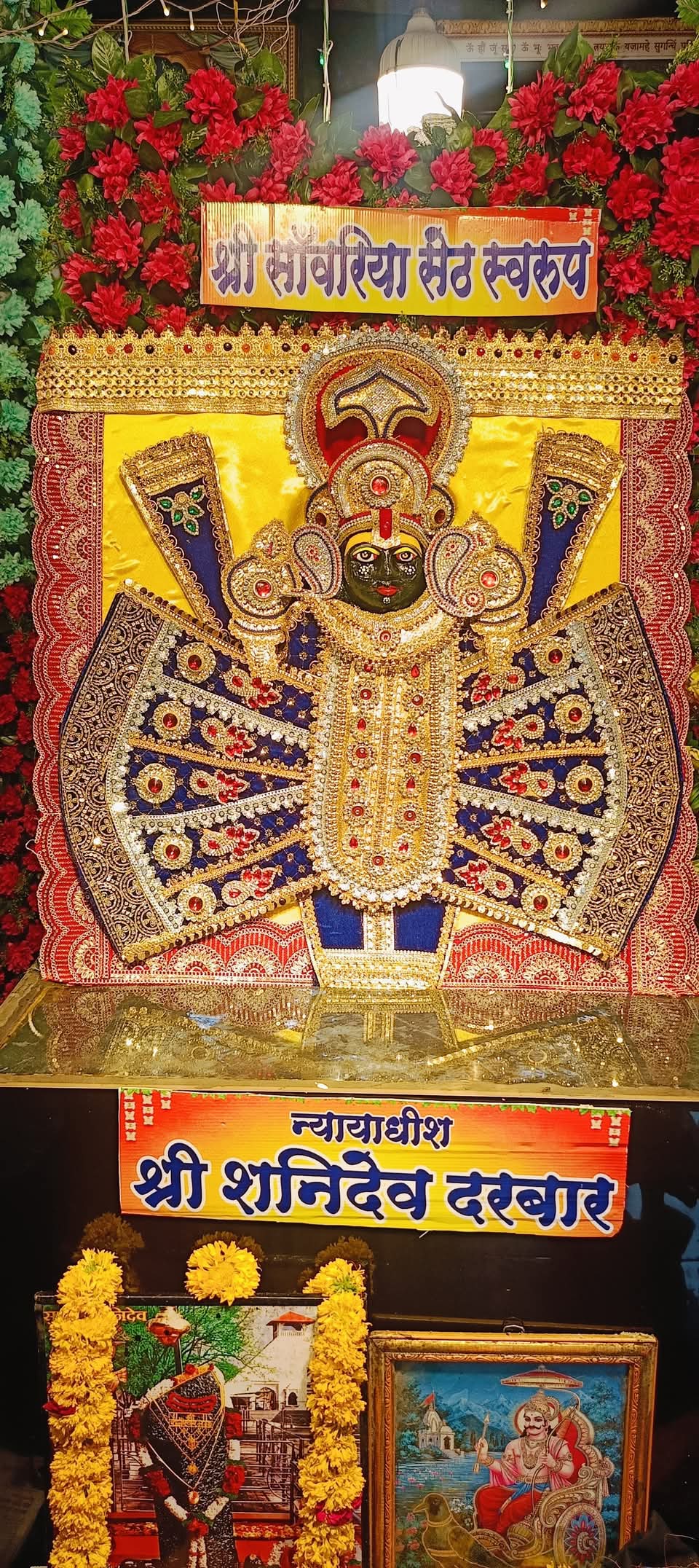 उज्जैन। आती प्राचीन स्थान हरसिद्धि चौराहा पर स्थित श्री सूर्यपुत्र शनिदेव मंदिर पर प्रभु श्री शनिदेव भगवान के जन्म उत्सव के पावन पर्व पर प्रभु ने अपने भक्तों को सांवरिया सेठ स्वरूप में दर्शन दिए प्रतिवर्ष भगवान के जन्म उत्सव पर अलग-अलग प्रकार के दिव्या श्रृंगार से भगवान भक्तों को दर्शन देते हैं एवं उनकी हर मनोकामना मन्नत पूरी करते हैं इस बार भी आती प्राचीन चमत्कारी स्थान हरसिद्धि चौराहा पर स्थित श्री सूर्यपुत्र शनिदेव मंदिर पर प्रभु शनि देव जन्मोत्सव पर 20वां विशाल भंडारा महा आरती एवं छप्पन भोग आयोजन मुख्य पुजारी ज्योतिष आचार्य पंडित कैलाशचंद जोशी के नेतृत्व में किया गया है। इस शुभ अवसर पर प्रतिवर्ष अनुसार इस वर्ष में राजू नागर परिवार द्वारा प्रभु को 56 भोग लगाए गए एवं मुख्य पुजारी श्री जोशी जी को साफा बांधकर सम्मानित किया गया मंदिर पुजारी परिवार द्वारा सभी भक्तगणों को पंछा पहनकर सम्मानित किया गया महा आरती का भार शुभम पंचोली ने संभाला जिसमें हजारों भक्तों ने आरती की और धर्म लाभ प्राप्त किया श्री सूर्य पुत्र शनिदेव मंदिर के मुख्य पुजारी ज्योतिष आचार्य पंडित कैलाशचंद जोशी एवं उनके पुत्र पुजारी दिनेश जोशी पुजारी कृष्ण जोशी पुजारी राज जोशी पुजारी निहाल जोशी ने सफल आयोजन पर सभी भक्तगणों का आभार मान धन्यवाद कहा कार्यक्रम में मुख्य रूप से सम्मिलित हुए। महाकाल थाना प्रभारी श्री गगन बादल, संयुक्त ब्राह्मण सामाजिक कल्याण समिति से राष्ट्रीय अध्यक्ष एडवोकेट अजय शंकर तिवारी जी, महिला अध्यक्ष रेखा दीदी एवं उनकी टीम राजू नगर,महिला मोर्चा जिला अध्यक्ष प्रमिला यादव,वार्ड 10 बीजेपी पार्षद गब्बर भाटी, समाज सेविका नीलू वर्मा, गौ रक्षक राष्ट्रीय अध्यक्ष डॉक्टर भंवर सिंह चौधरी,डॉक्टर अनिल जीनवाल, महंत निलेशनंदतिवारी जी, निर्मला यादव,नेहा तिवारी समाज सेविका,नेहा चौधरी,समझ सेविका निर्मला यादव,राजीव द्विवेदी,अरविंदर चौहर,पारस भैया,पंडित राहुल, बंटी ठाकुर, एवं अन्य काई पदाधिकारी भक्त गण उपस्थित रहे।
