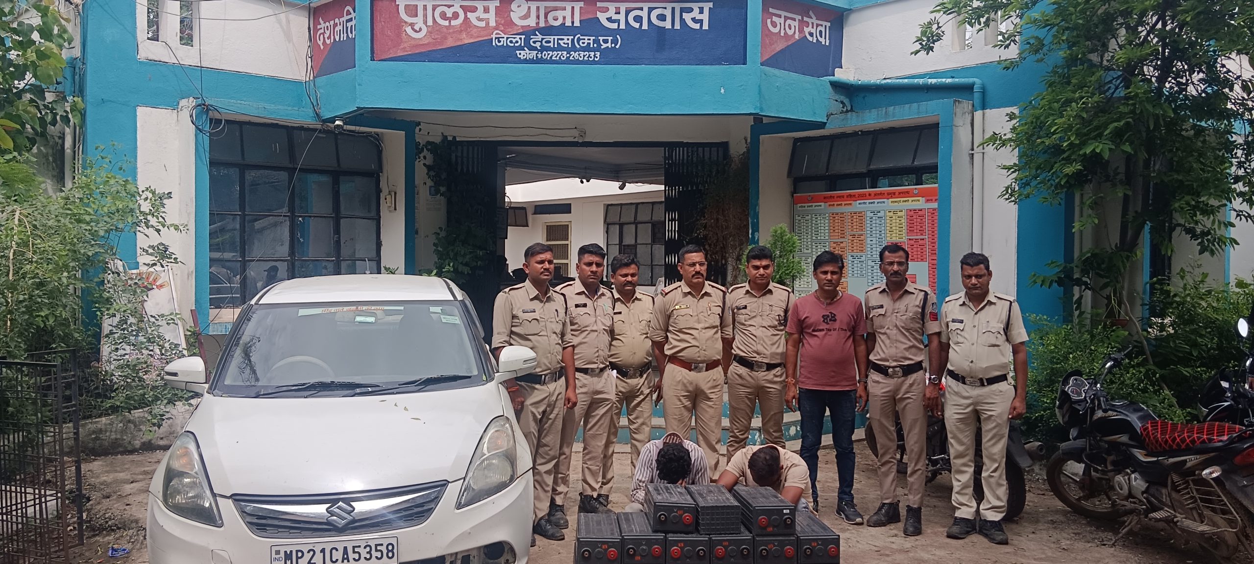 इसी क्रम में दिनांक 1/07/2025 को थाना प्रभारी सतवास को मुखबिर द्वारा सूचना प्राप्त हुई कि ग्राम पीपलकोटा राधास्वामी व्यास के सामने खातेगांव की तरफ से सतवास की ओर आ रहे थे। से एक व्यक्ति सफेद रंग की कार मारुति सुजुकी स्विफ्ट वाहन क्रमांक MP41CA5358 की डिक्की मे टॉवर की 24 बैटरी लेकर आ रहे थे।