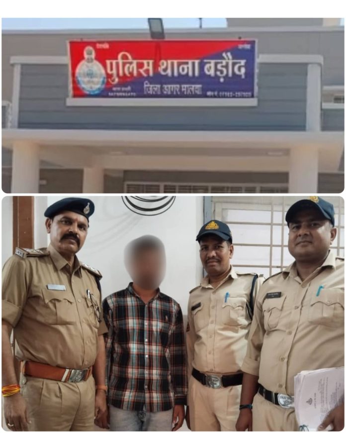 भविष्य दर्पण दुर्गाशंकर टेलर आगर मालवा पुलिस ने एक बड़ी सफलता हासिल करते हुए NDPS एक्ट के तहत 3 साल से फरार चल रहे ₹5,000 के इनामी आरोपी आमिर पिता आमीन खान को गिरफ्तार किया है। आरोपी को पकड़ने में बड़ौद पुलिस ने डग पुलिस की मदद ली। आमिर पर आरोप है कि वह अक्टूबर 2022 में बड़ौद क्षेत्र में हुई अवैध मादक पदार्थ तस्करी की घटना में शामिल था और उसके बाद से फरार चल रहा था। पुलिस अधीक्षक विनोद कुमार सिंह ने फरार आरोपी की गिरफ्तारी पर इनाम घोषित किया था।