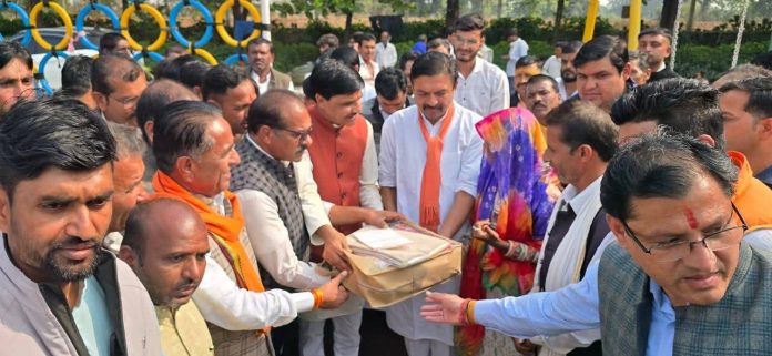 भविष्य दर्पण दुर्गाशंकर टेलर आगर मालवा। भाजपा विधायक मधु गेहलोत और समिति द्वारा आगर विधानसभा क्षेत्र में सामाजिक सरोकारों को मजबूत करने की दिशा में लगातार दूसरे वर्ष भी भव्य निःशुल्क सामूहिक विवाह सम्मेलन आयोजित किया जा रहा है। पिछले वर्ष जहाँ 151 जोड़े परिणय-सूत्र में बंधे थे, वहीं इस वर्ष यह संख्या बढ़कर 551 जोड़ों तक पहुँच गई है। इन सभी कन्याओं का ससम्मान विवाह संस्कार 14 दिसंबर को सम्पन्न कराया जाएगा। जिसमें मुख्यमंत्री डॉ मोहन यादव व बागेश्वर धाम कार्यक्रम में शामिल होंगे। इसी विषय को लेकर सोमवार को मोन्टू होटल में प्रेसवार्ता आयोजित हुई। इसमें विधायक मधु गेहलोत ने कार्यक्रम की तैयारियों और व्यवस्थाओं को लेकर सोमवार एक निजी होटल में सभी वर–वधुओं को एकत्र कर कपड़ा वितरण कार्यक्रम आयोजित किया गया। सम्मान व संस्कार का अद्वितीय आयोजन पिछले वर्ष हुए सफल सामूहिक विवाह आयोजन के बाद इस बार सम्मेलन को और अधिक भव्य, व्यवस्थित एवं प्रेरणादायी बनाने की तैयारियाँ जोरों पर हैं।