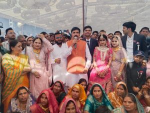 विधायक ने इस अवसर पर कहा कि यह केवल एक शादी नहीं, बल्कि बेटियों के प्रति उनके स्नेह और दायित्व की अभिव्यक्ति है। इस अवसर पर मुख्यमंत्री डॉ मोहन यादव ने वीडियो कांफ्रेंस के माध्यम से सभी जोड़ों को आर्शीवाद दिया, जबकि बागेश्वर के पीठाधीश धीरेन्द्र कुमार शास्त्री ने वीडियो कांफ्रेंस के माध्यम से विधायक मधु गेहलोत के पुत्र मोहित गेहलोत को आर्शीवाद दिया। और जोड़ों को भी आर्शीवाद दिया। और विधायक मधु गेहलोत ने भी सभी नव-विवाहित जोड़ों को सुखद और मंगलमय जीवन की शुभकामनाएं दीं। इस भव्य आयोजन में जिला के भाजपा पदाधिकारियों व कार्यकर्ताओं ने पूर्ण रूप से सहयोग दिया है। यह आयोजन सामाजिक समरसता की मिसाल बन गया है। जहां गरीब और जरूरतमंद बेटियों की शादी करवाई। इस दौरान आर्शीवाद देने भाजपा जिलाध्यक्ष ओम मालवीय, जिला पंचायत अध्यक्ष मुन्नाबाई चौहान, पुर्व विधायक राणा विक्रमसिंह, बहादुर सिंह मुकाती,पुर्व जिलाध्यक्ष चिंतामण राठौर, श्याम सिंह परिहार, जिला महामंत्री सुरजसिंह परिहार, मंयक राजपूत, कैलाश कुंभकार,रामेश्वर तेजरा,भेरूसिंह चौहान, निलेश पटेल, संगीता देसाई, चंद्रेश शर्मा, डॉ राहुल जैन, मंडल अध्यक्ष भरत प्रजापत, प्रहलाद सिंह चौहान, राजेश आर्य, सुरेंद्र सिंह परिहार, मेहरबान सिंह,मनीष सोनी, सहित पदाधिकारियों व कार्यकर्ताओं आए थे। यह जानकारी जिला मीडिया प्रभारी महेश शर्मा तनोडिया ने दी।