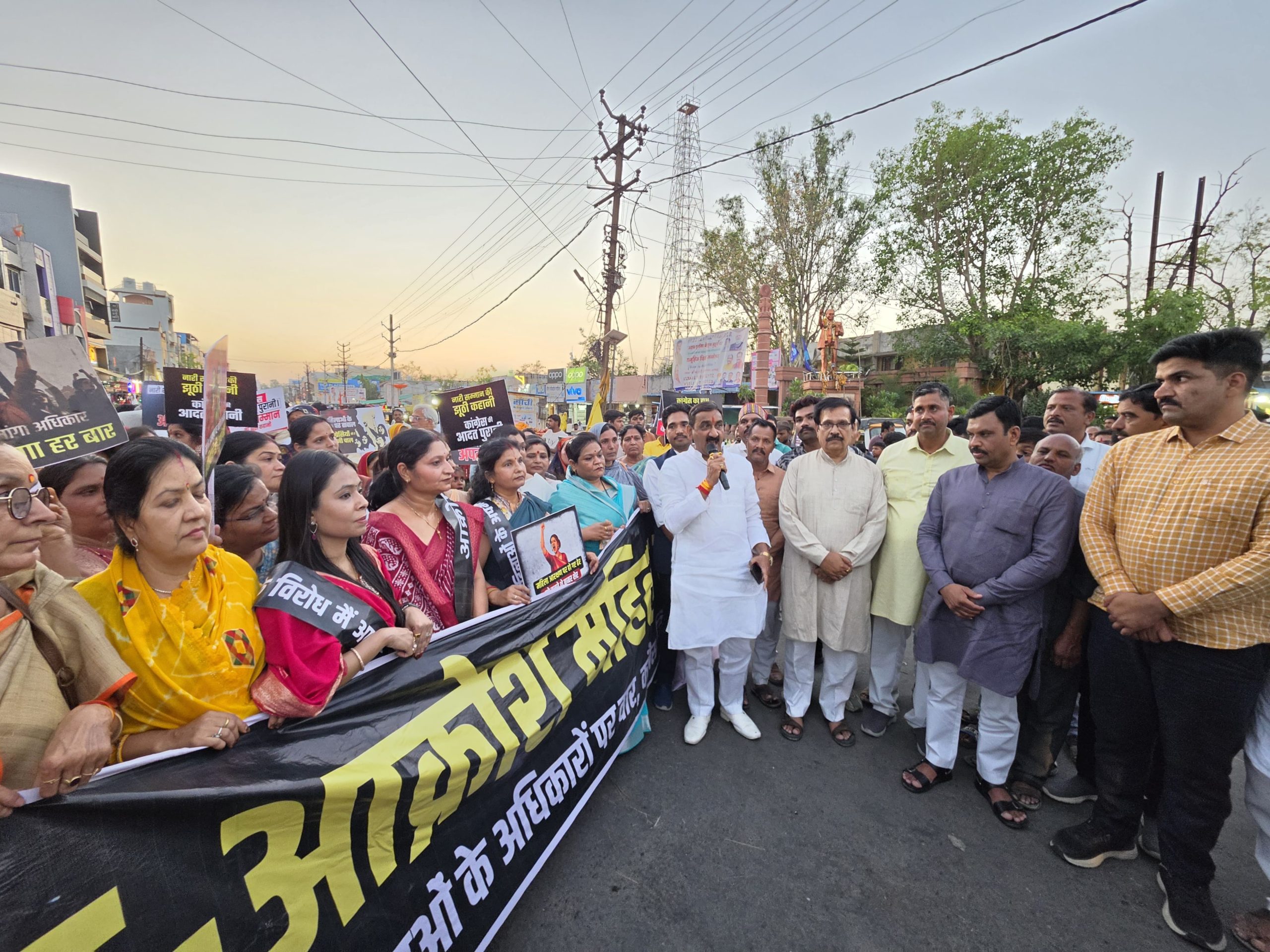 भाजपा जिलाध्यक्ष श्री राजेश धाकड़ ने आक्रोश रैली को संबोधित करते हुए कहा कि नारी शक्ति अधिनियम महिलाओं को सशक्त बनाने एवं राजनीति में उनकी भागीदारी सुनिश्चित करने का ऐतिहासिक कदम है लेकिन कांग्रेस ने हमेशा महिला आरक्षण एवं महिला सशक्तिकरण का विरोध किया है। कांग्रेस का यह विरोध सिर्फ राजनीति नहीं बल्कि 50 प्रतिशत आबादी वाली नारी शक्ति का अपमान है।